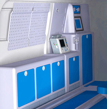 醫(yī)療艙內(nèi)飾采用ABS模壓成型工藝制作而成,防水、防霉、抗菌、易清洗。