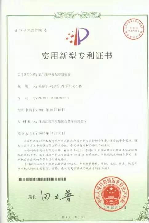 5、實用新型專利:氧氣集中控制系統(tǒng),將兩個或多個氧氣瓶集中輸出氧氣管理;直觀的顯示氧氣壓力;將氧氣瓶與氧氣瓶不間斷換瓶。
