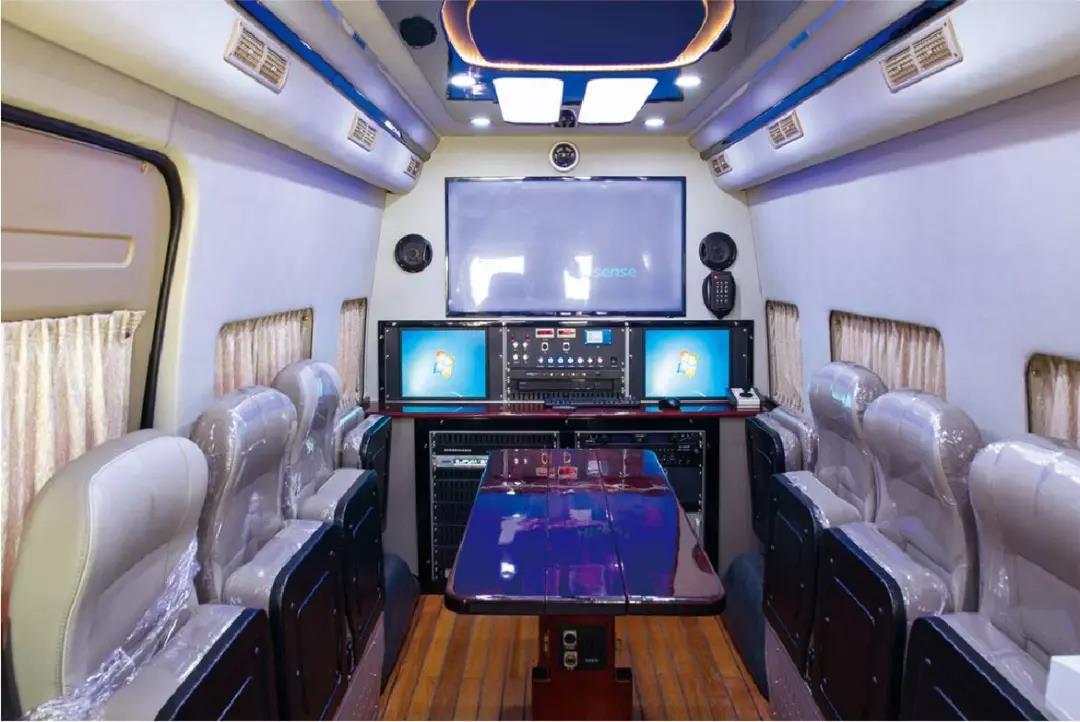 可用江鈴全順、進(jìn)口依維柯等輕型客車為改裝平臺(tái),配備會(huì)議室系統(tǒng)、辦公系統(tǒng)、空調(diào)系統(tǒng)、現(xiàn)場案情分析白板繪畫功能等,為現(xiàn)場應(yīng)急指揮提供舒適的辦公環(huán)境。